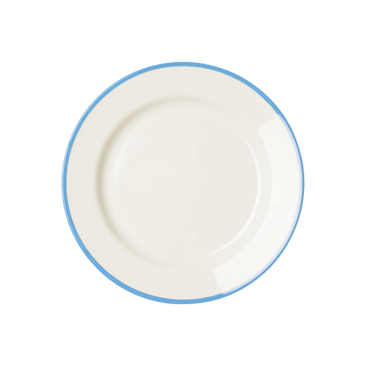 따뜻한 크림에 블루 림 라인이 돋보이는 감각적인 8인치 원형 플레이트입니다.